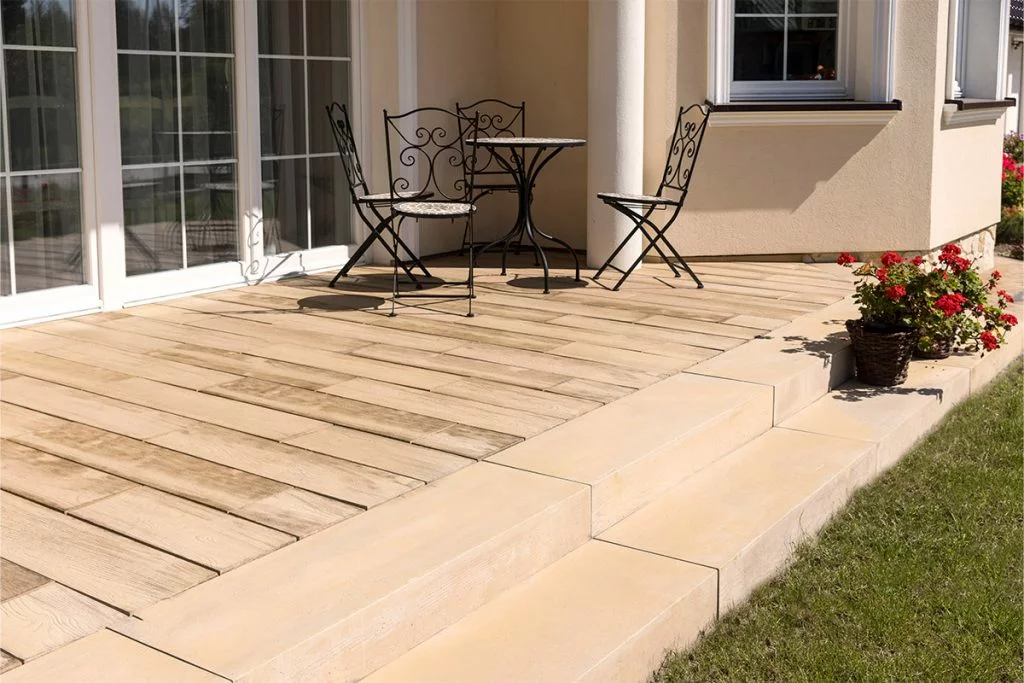 Urokliwe bloki schodowe, będące uzupełnieniem płyt tarasowych Deski Ogrodowe, to wyjątkowa propozycja dla wszystkich tych, którzy cenią sobie naturalne piękno surowego drewna. Trzy warianty kolorystyczne oraz dwie zaproponowane długości pozwolą z łatwością dopasować wybrane elementy do otaczającej nawierzchni oraz form małej architektury. Bloki schodowe Drewno Ogrodowe będą się pięknie prezentowały jako elementy łączące różne poziomy w ogrodzie w bliskim sąsiedztwie trawnika, harmonizując z jego soczystą zielenią. Sprawna zabudowa oraz wyjątkowa trwałość materiału sprawią, że szybko staniemy się właścicielami pięknych i wytrzymałych schodów.