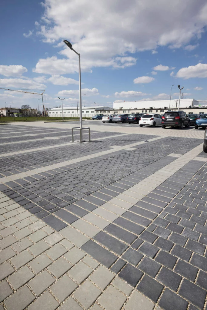 Dzięki temu nawierzchnia zachowuje 15% powierzchni biologicznie czynnej, umożliwiając naturalne odprowadzanie wody do gruntu.